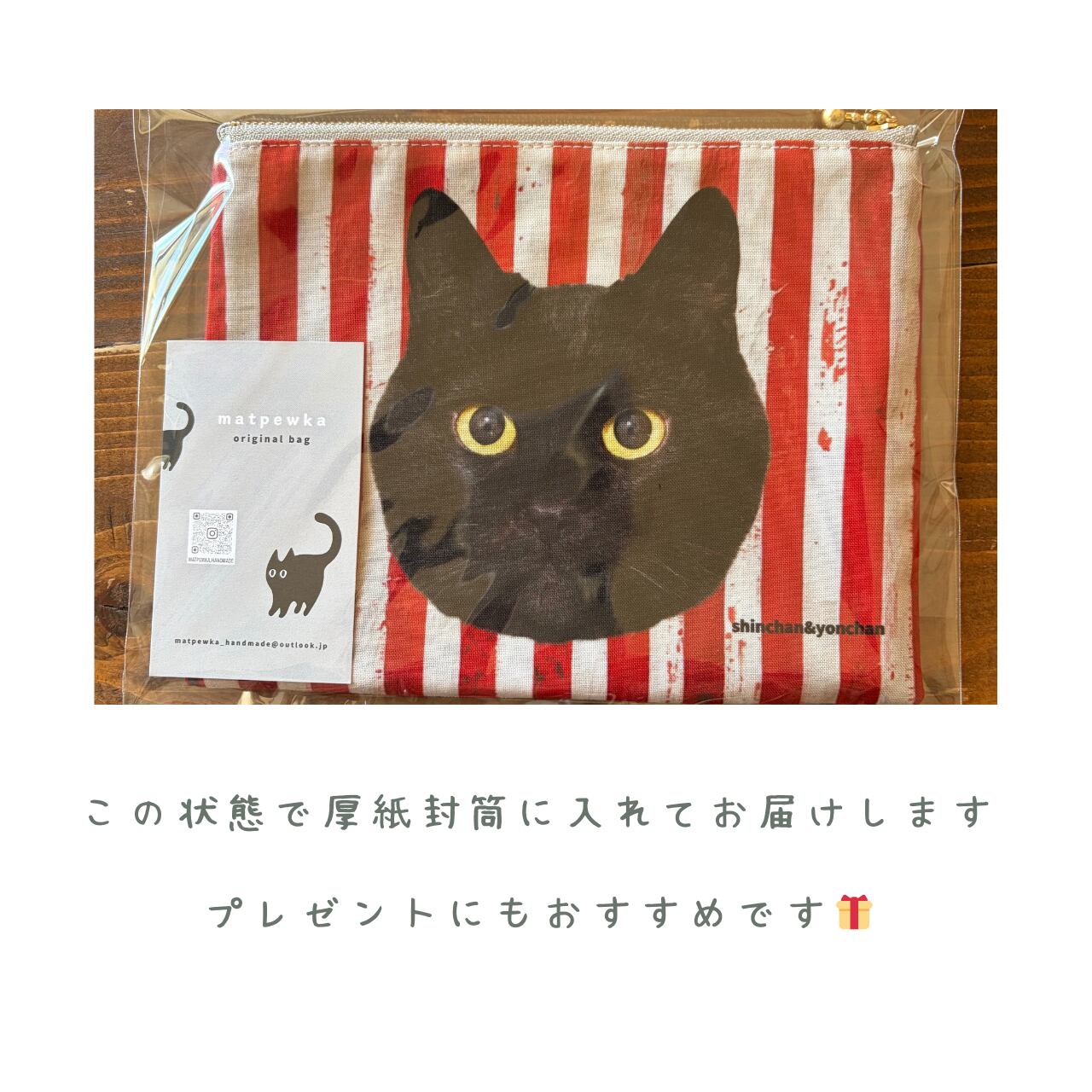 簡易包装+ショップカードで厚紙封筒に入れて発送します。